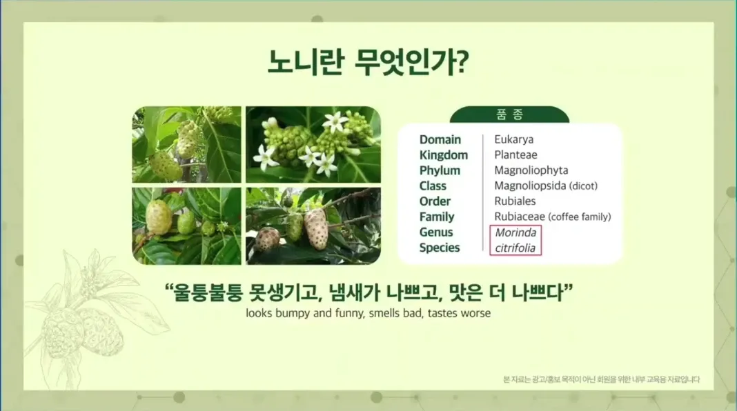 노니의 핵심은 성분이 아니라 흡수율입니다.