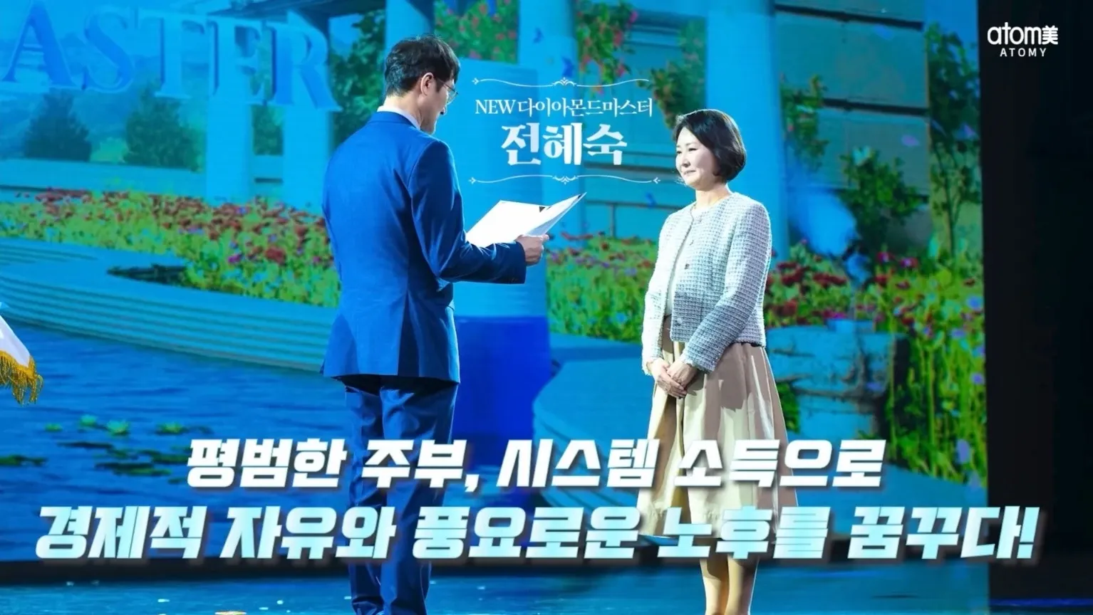 - 성장과 응원: 은퇴 후를 대비하며 시스템에 집중 참여하여 스스로를 변화시킨 파트너는 약학 박사인 남편의 든든한 응원과 제품 조언까지 받으며 사업에 탄력을 받아 다이아몬드 마스터에 도전합니다.
